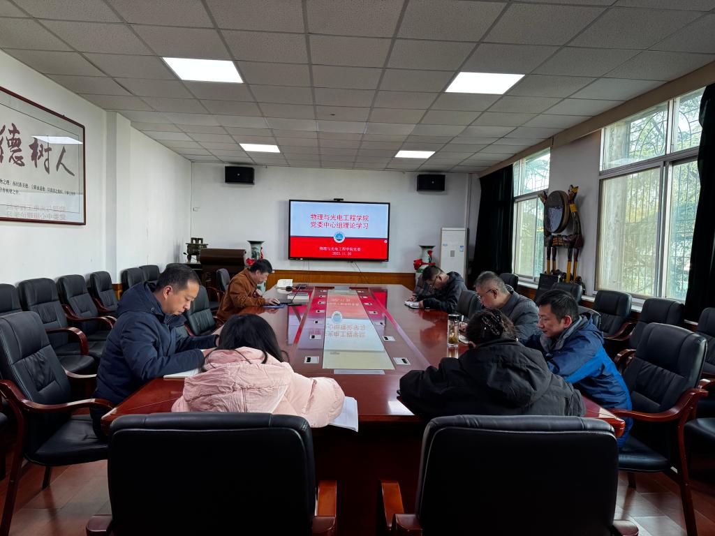 11月20日下午,我院党委理论学习中心组在10教306会议室开展十一月份政治理论集中学习。中心组全体成员、支部书记参会,会议由学院党委书记凌新华主持。