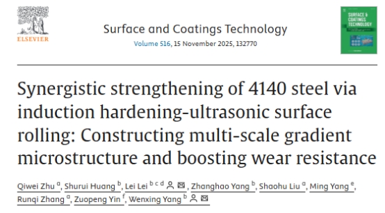 近日,必赢626net入口首页雷磊副教授在石油装备关键部件表面强化技术领域取得新进展,研究成果以“Synergistic strengthening of 4140 steel via induction hardening-ultrasonic surface rolling: Constructing multi-scale gradient microstructure and boosting wear resistance”为题,发表于国际期刊《Surface & Coatings Technology》(JCR一区期刊)。长江大学为第一作者单位,我院雷磊副教授与杨文星教授为共同通讯作者。