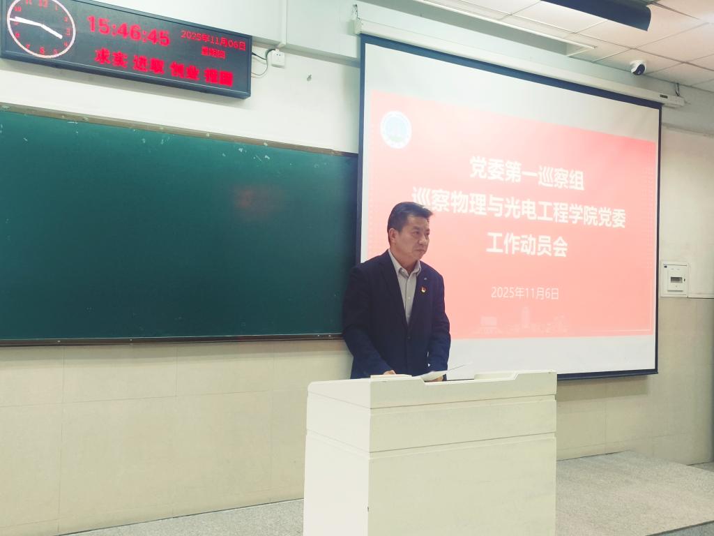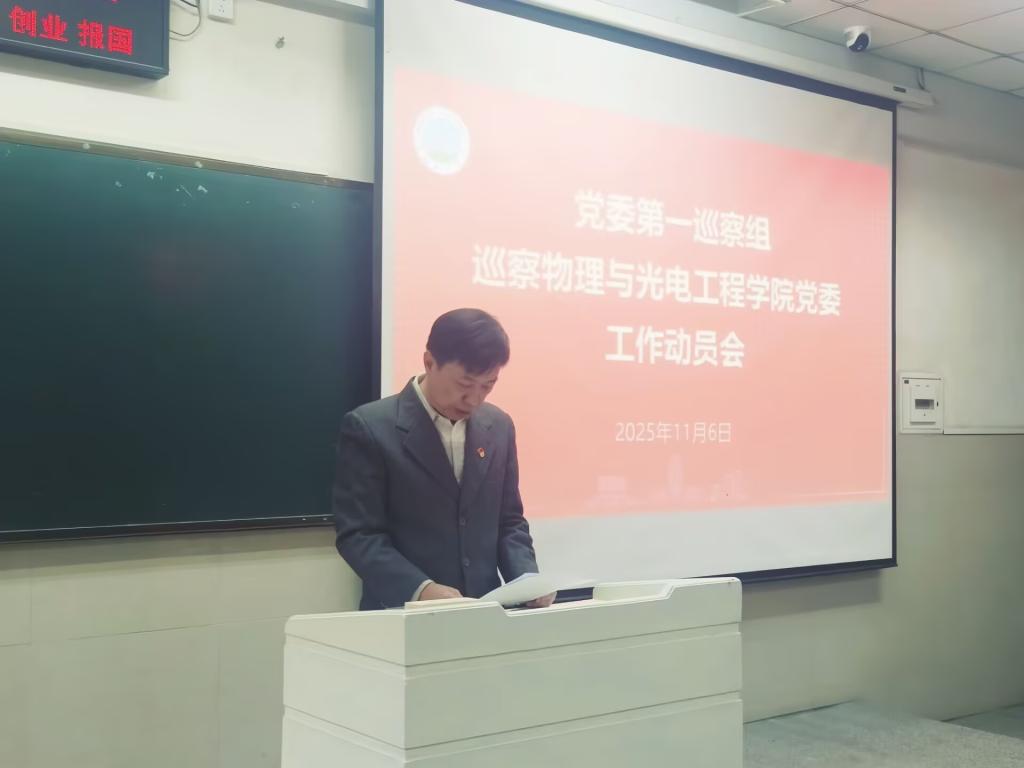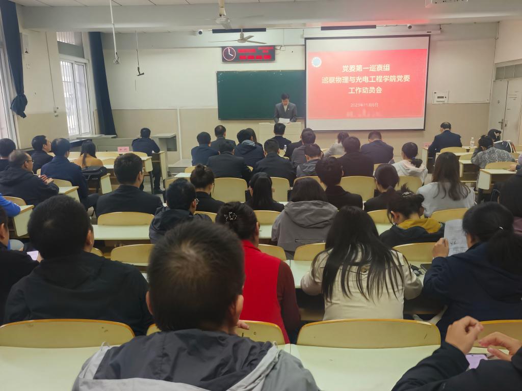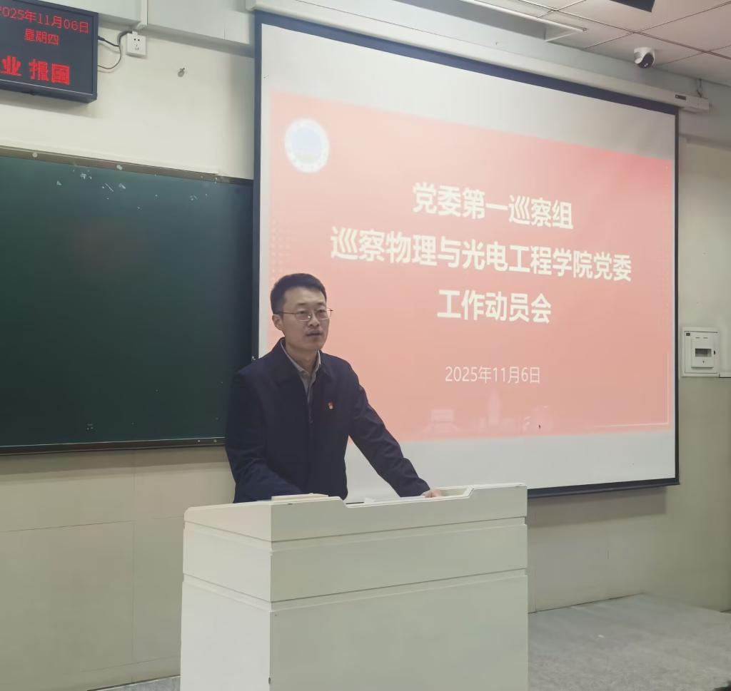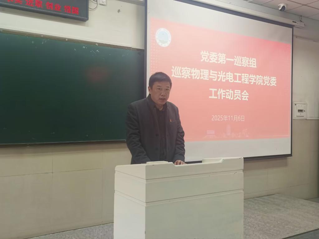 根据校党委统一部署,11月6日下午,党委第一巡察组巡察物理与光电工程学院党委工作进驻动员会在东校区12教103教室举行。校党委常委、党委组织部部长、党委统战部部长、党委巡察工作领导小组副组长李应军出席会议并讲话,党委第一巡察组全体成员、物理与光电工程学院全体教职工、学生代表参加会议,学院党委书记凌新华主持会议。