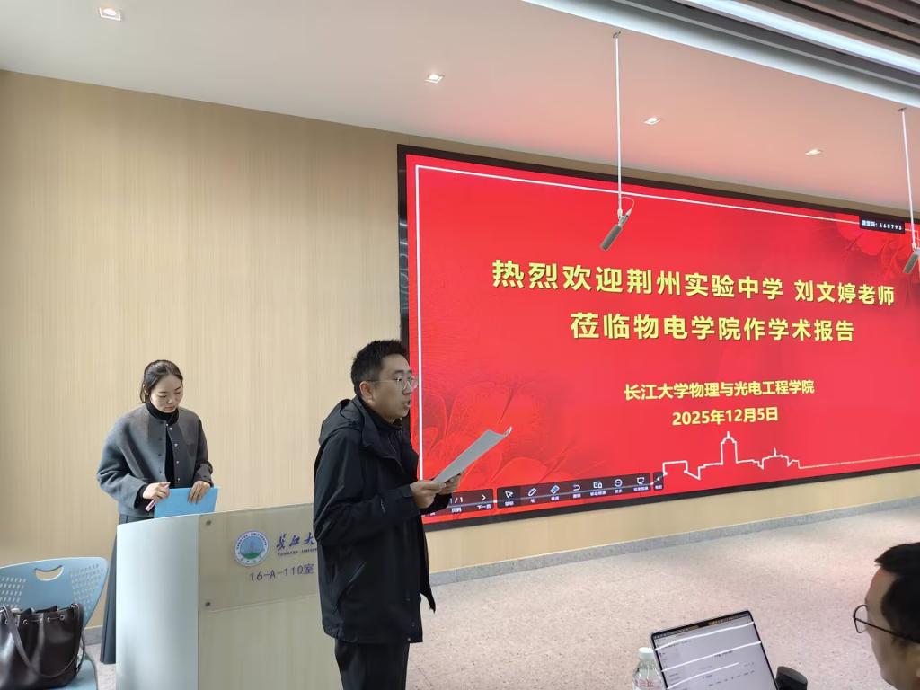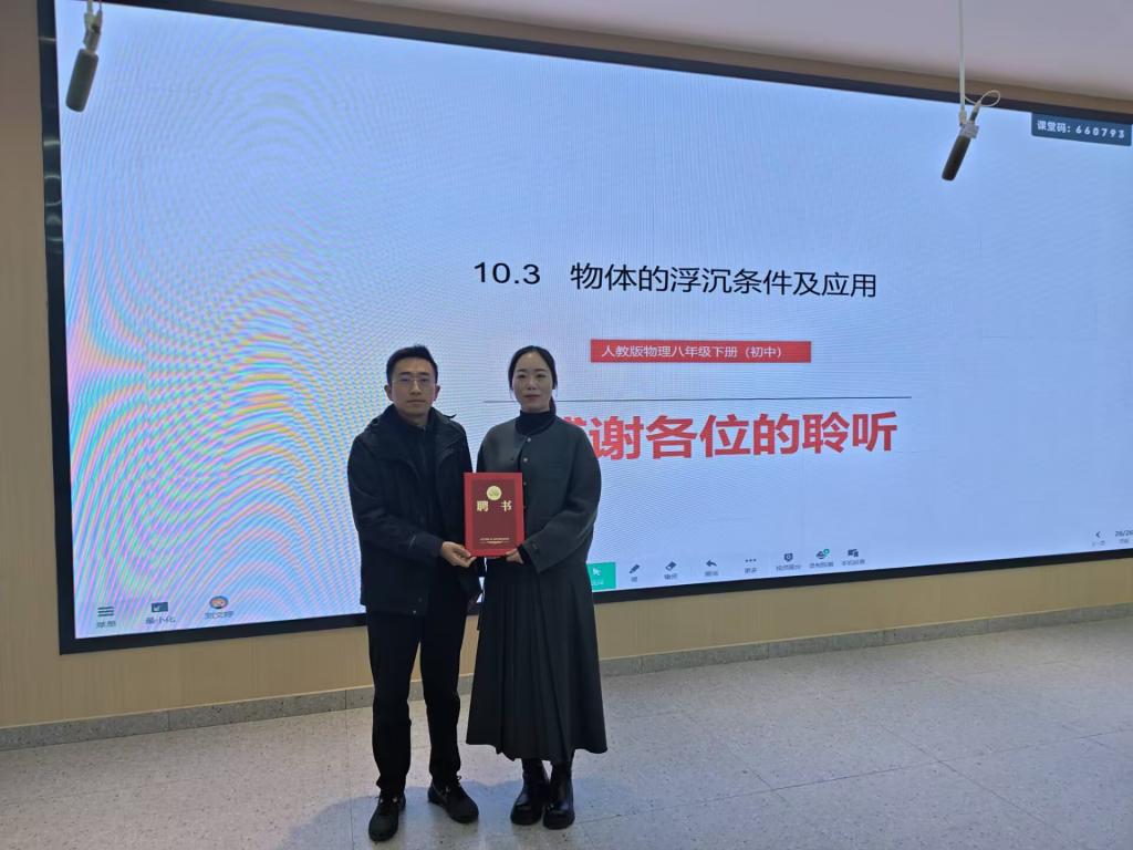 2025年12月5日下午,应必赢626net入口首页邀请,荆州市实验中学物理骨干教师刘文婷老师在16教A110教室开展题为“核心素养引领下的初中物理教学——以《物体的浮沉条件及应用》为例”的专题师范讲座。学院院长助理代尘杰教授、部分教师代表及22级、23级物理师范专业全体学生共同参加了讲座。讲座结束后,学院举行了简朴而庄重的兼职教师聘任仪式,正式聘任刘文婷老师为我院兼职教师。