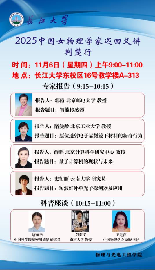 2025中国女物理学家巡回义讲荆楚行 学术报告会(长江大学站)