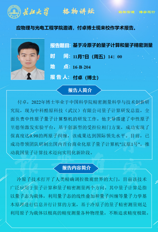 我院2025年学术报告第十七讲-基于冷原子的量子计算和量子精密测量