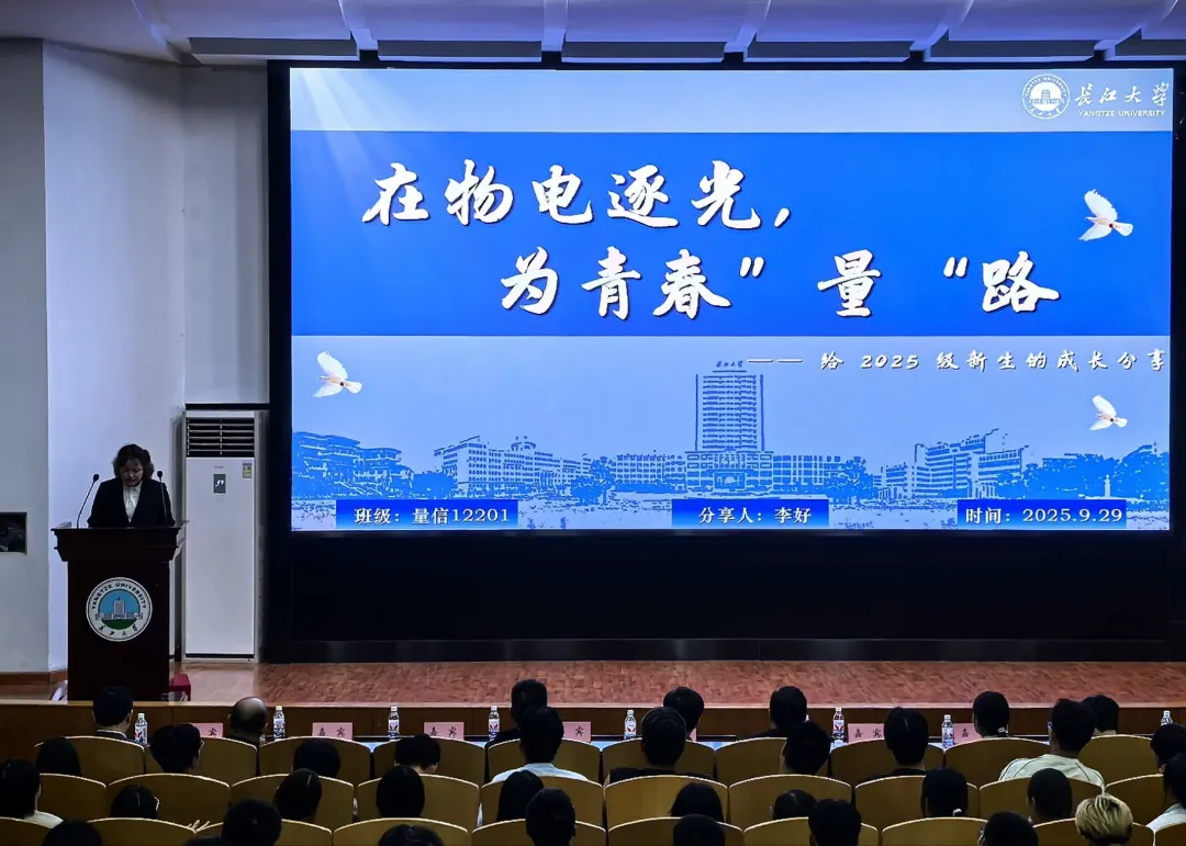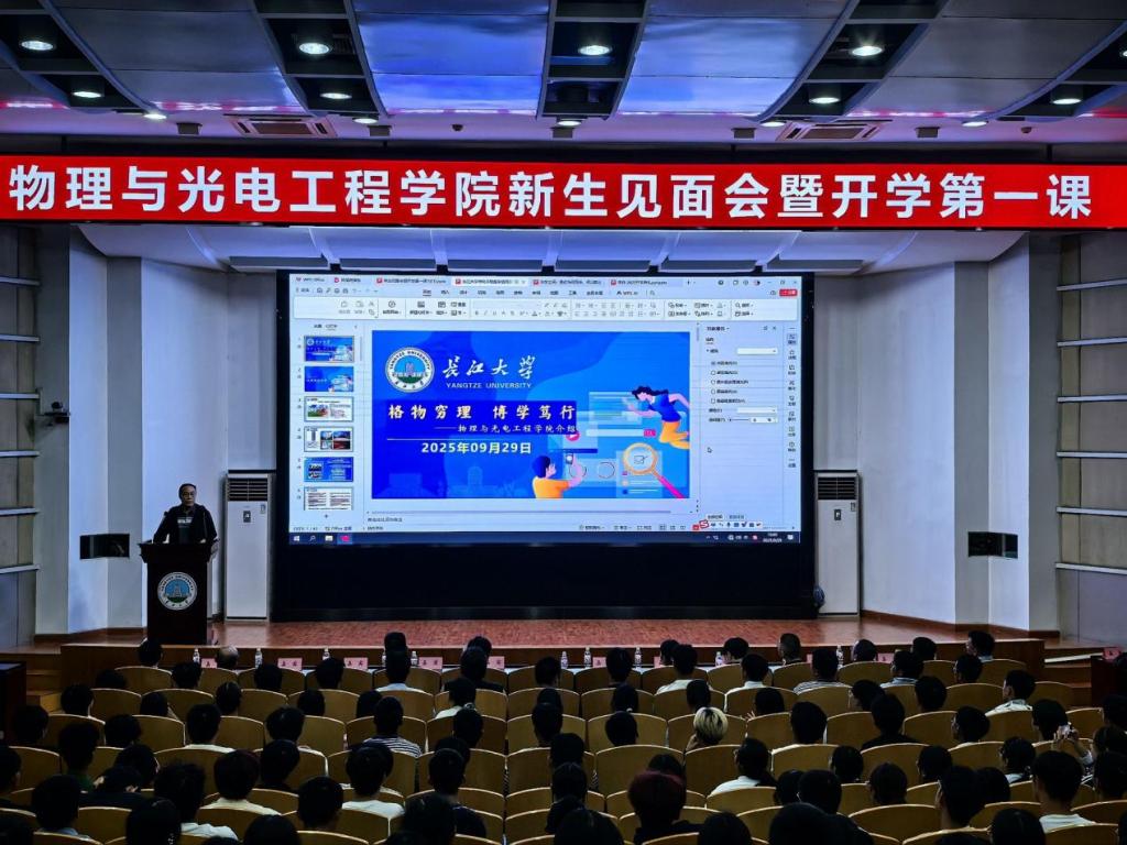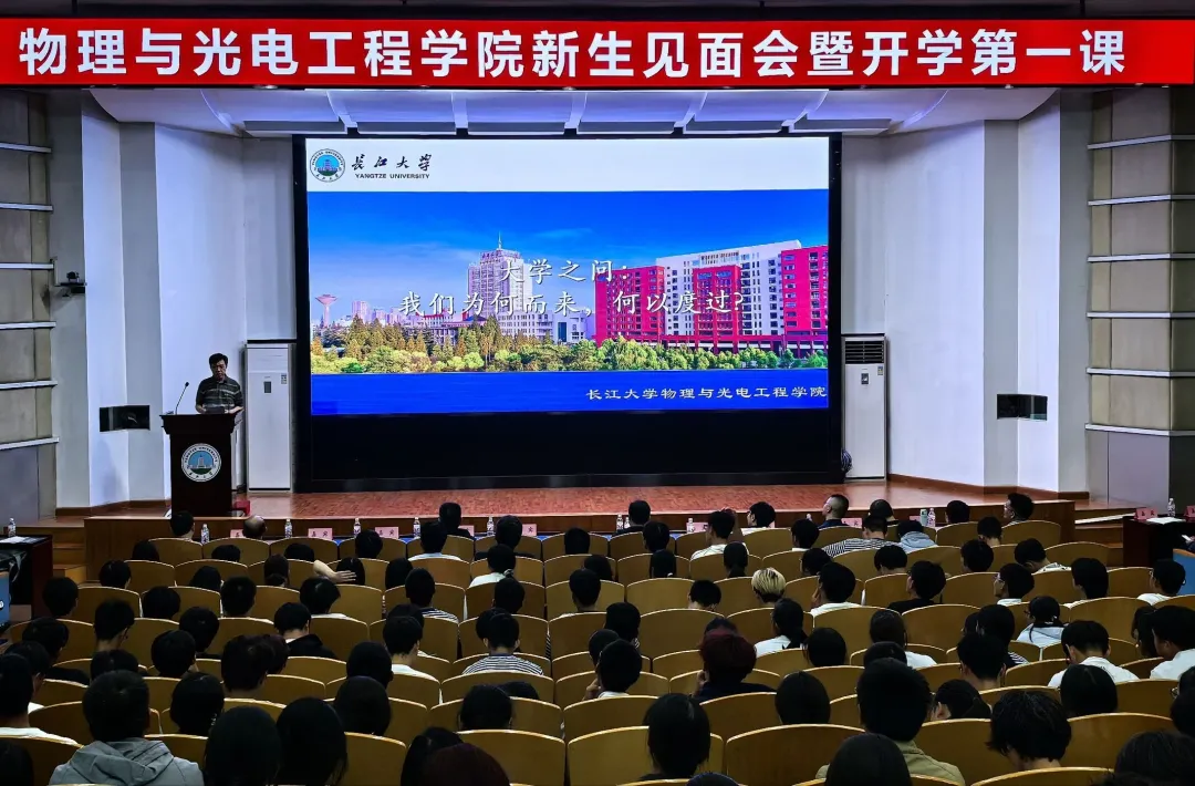 新生见面会后,学院各专业分别从培养目标、课程设置及发展前景等方面开展专业教育。物理学系主任喻春潮结合“国家一流专业”优势,阐述学科特点是培育基础教育领域教师、科研机构研究人员及企业技术人才,指出高质量就业与升学依托“理论+技能”模式;量信专业负责人孙利辉教授指出,长江大学量子信息科学专业是全国第三所高校设立的新兴专业,作为具有前沿性和竞争性的学科,学好专业知识将有大作为;光电系主任黄海聚焦省级一流专业,介绍该专业已形成‘理论教学+产业实践’的协同培养模式,其模式为学生发展提供有力支撑;同时指出,专业还为学生的未来发展搭建起升学、就业、创业的多元化路径,充分展现了其高水平的人才培养模式。
