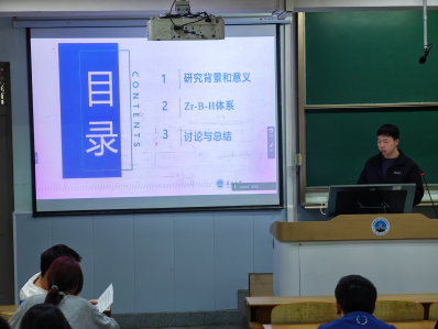 在材料结构与物理特性方面,管祥桢聚焦中低压下过渡金属硼氢化物,研究Zr-B-H三元体系的晶体结构演化与超导特性;李思衡采用CALYPSO晶体结构预测方法与第一性原理,研究 RuSi₂在高压下的结构、硅层构型及物理性质;谢耀龙在一维原子晶格中引入位置与宽度随机涨落,研究几何和结构无序对非互易夫琅禾费衍射的影响;