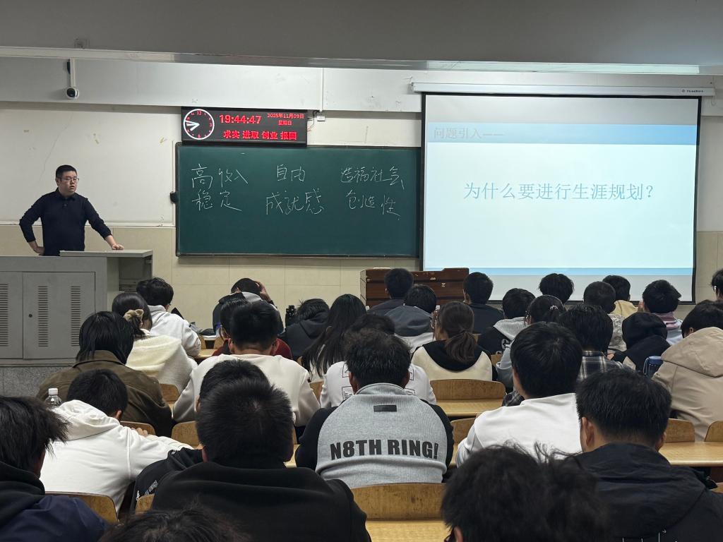 (通讯员:郭瀚)11月9日晚上,我院“破局·领航——我的大学生涯蓝图”生涯教育主题班会圆满举行。活动由李子瑶同学主持,辅导员邱浩然和全体2025级本科生参与。