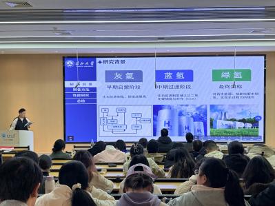化学与环境工程学院李周城同学汇报了高浓度氢键位点破乳剂的合成及相关研究,为工业污水处理领域的技术优化提供了新的研究思路;刘俊龙同学分享了泡沫镍基硫化物电催化剂的制备与性能研究情况,呈现了能源材料相关方向的阶段性研究成果。