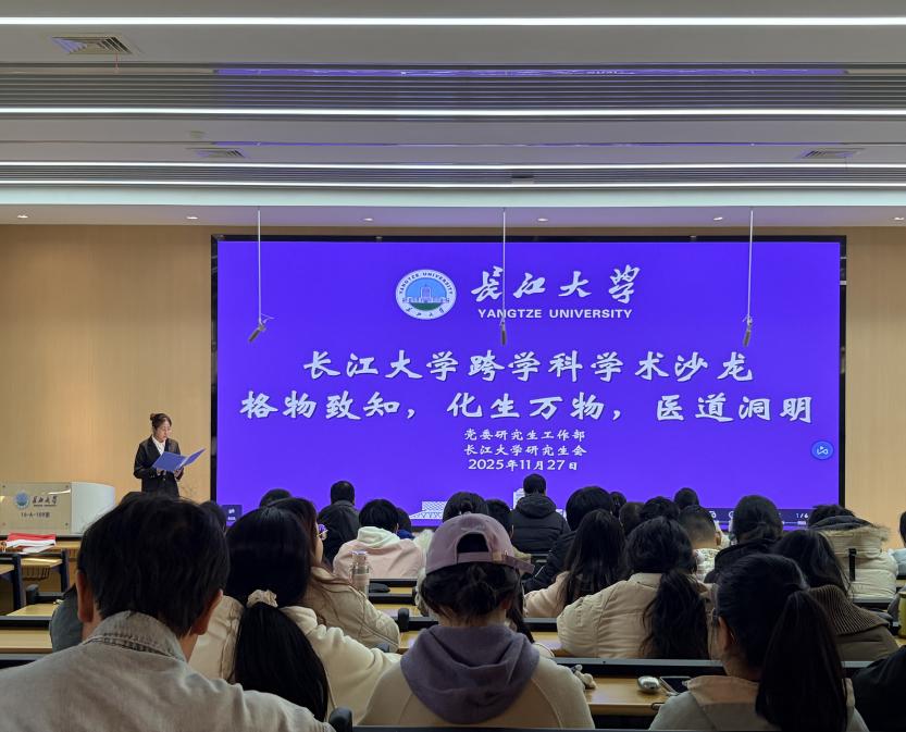 (通讯员庞海霞)11月27日下午,长江大学第四十六期跨学科学术沙龙在16-A-109成功举办。本次学术沙龙由必赢626net入口首页、化学与环境工程学院和医学部联合承办,以 “格物致知,化生万物,医道洞明” 为主题,肖围、张春燕、刘辉、王陈老师应邀出席,全体研究生积极参与。